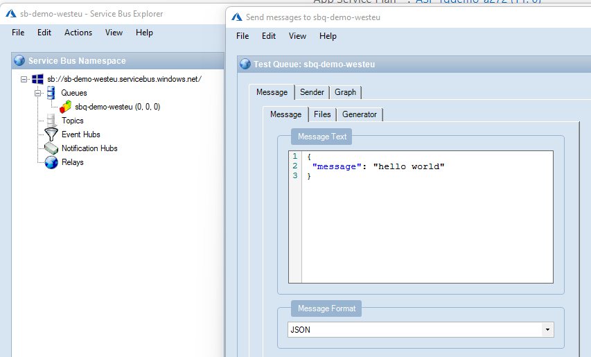 <connection_name>__fullyQualifiedNamespace=<service_bus_namespace>.servicebus.windows.netFor my app that resolves to:ServiceBusConnection__fullyQualifiedNamespace=sb-demo-westeu.servicebus.windows.net