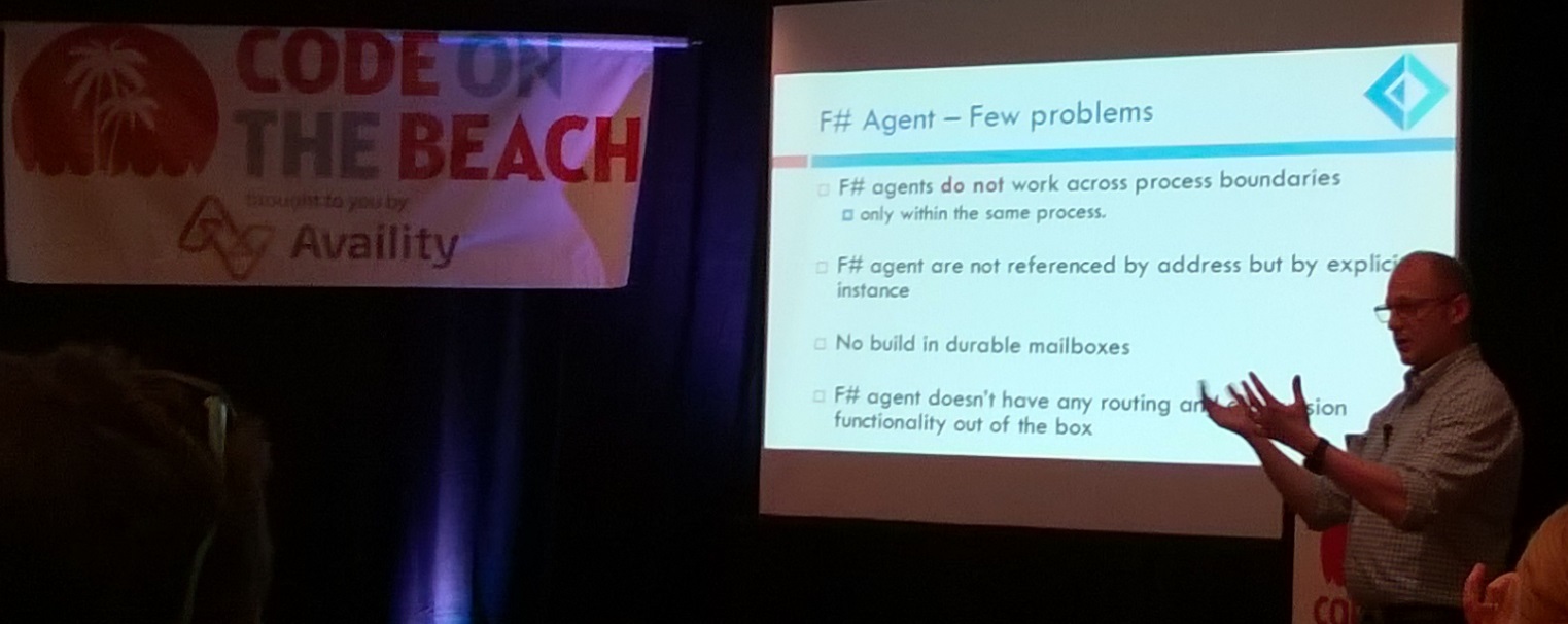 "This presentation will introduce concepts in architecture such as immutability, isolation and asynchronous processing utilizing tools such as AKKA.NET", sounds like a lot, and quite early in the presentation we realized that this would be a race against time. There are many concepts both with the actor model and F# that needs explaining, and Riccardo had plenty of demos he wanted to show us. They were suitable and good, and he tried to convince us with plenty of "pay no attention to the syntax", but it was kind of hard to keep up at that speed. Regardless, Riccardo shows great enthusiasm for the topic, and the last demos were especially cool. As he said "You like that, yes? But that was not the grand finale! Wait for the grand finale!". We liked it.