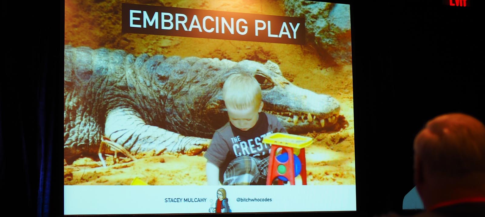 Stacey Mulcahy is a technical evangelist for Microsoft, and a bomb of energy. This talk focused on the importance of play, and having fun. Stacey went through some of her hilarious side-projects, just interrupted by equally hilarious animated cat gifs. It's impossible to recapture what went on during this talk, but it included tears, joy and booty high-five using Raspberry pie!
