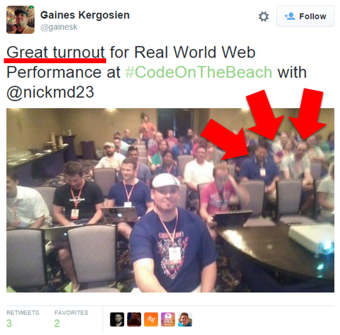 COB couldn't have started better. Nik Molnar (co-founder of Glimpse) acted as a Hanselman light - from notepad typing jokes before the sessions started, to a bonanza of one-liners. Never boring, in contact with the audience and with an energetic and charismatic character. The presentation was spot on, with hidden gems that left the audience in ave. An interesting metric called the Speed Index was introduced, and how to use the free service Webpagetest to get performance metrics for your site. The speed index measures how quickly the page contents are visually populated, and this should ideally be under 1000 ms.