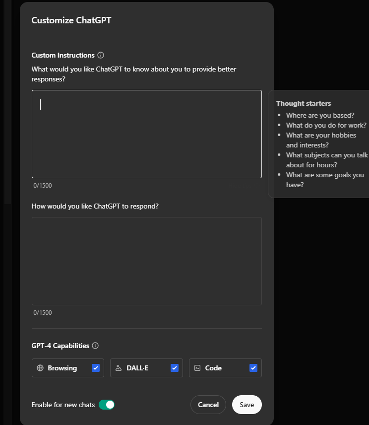 Open AI has introduced custom instructions for ChatGPT to give you more control over how ChatGPT responds. After receiving feedback about the friction of starting each ChatGPT conversation fresh, they have added the possibility to specify a set of instructions that will be applied for each conversation with ChatGPT.