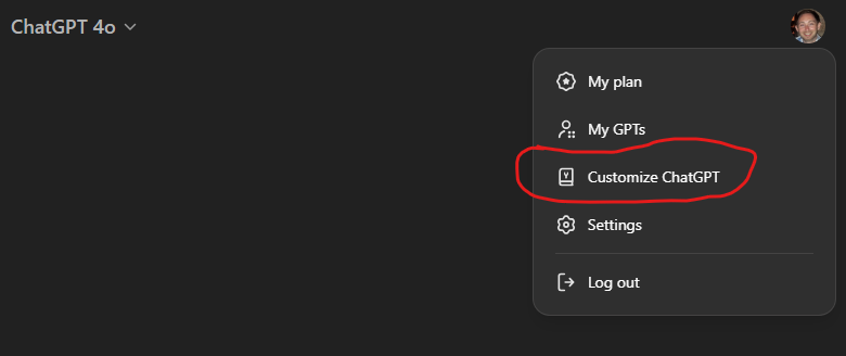 Click on the profile menu on the top right corner, choose "Customize ChatGPT":
