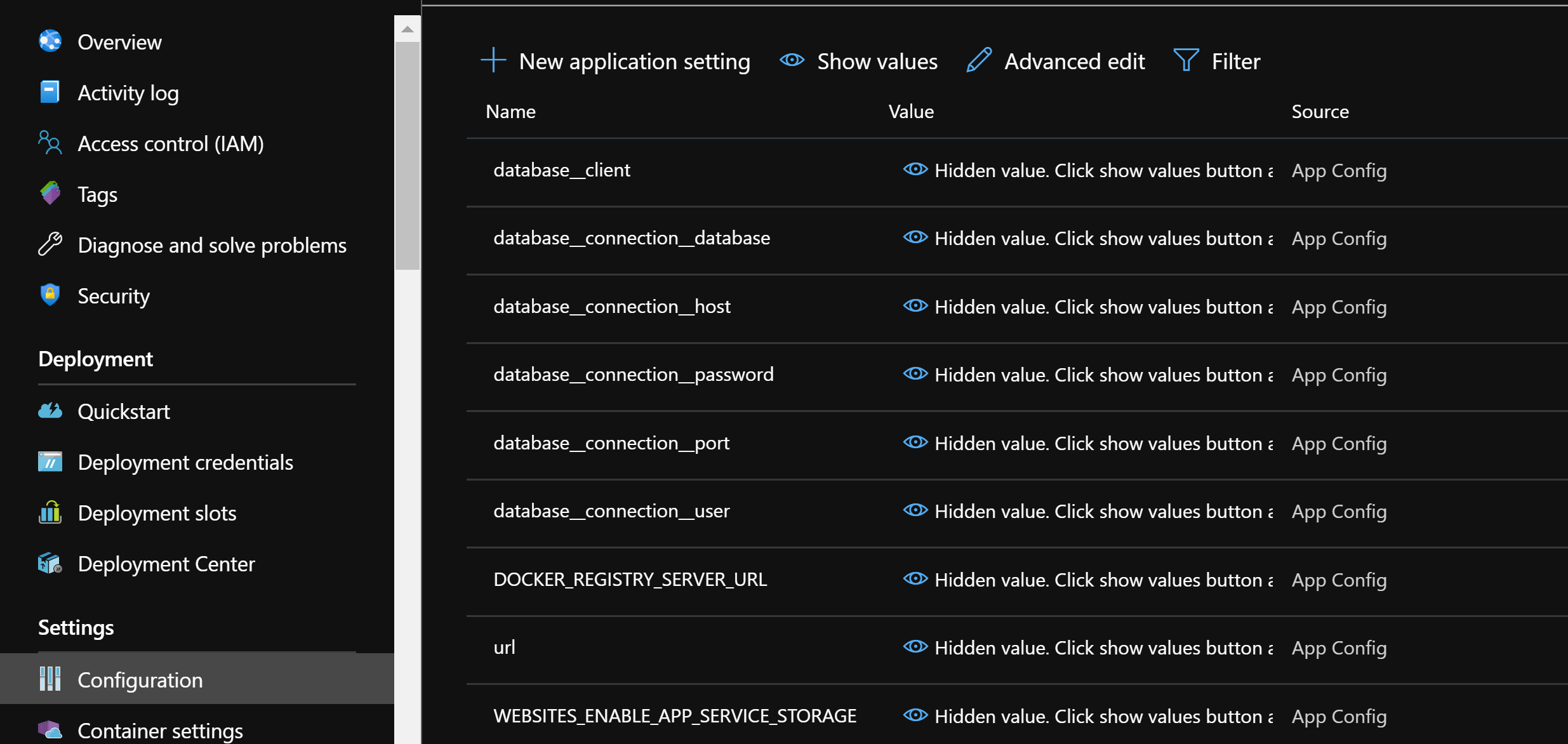 Now click on Configuration under Settings for App Service