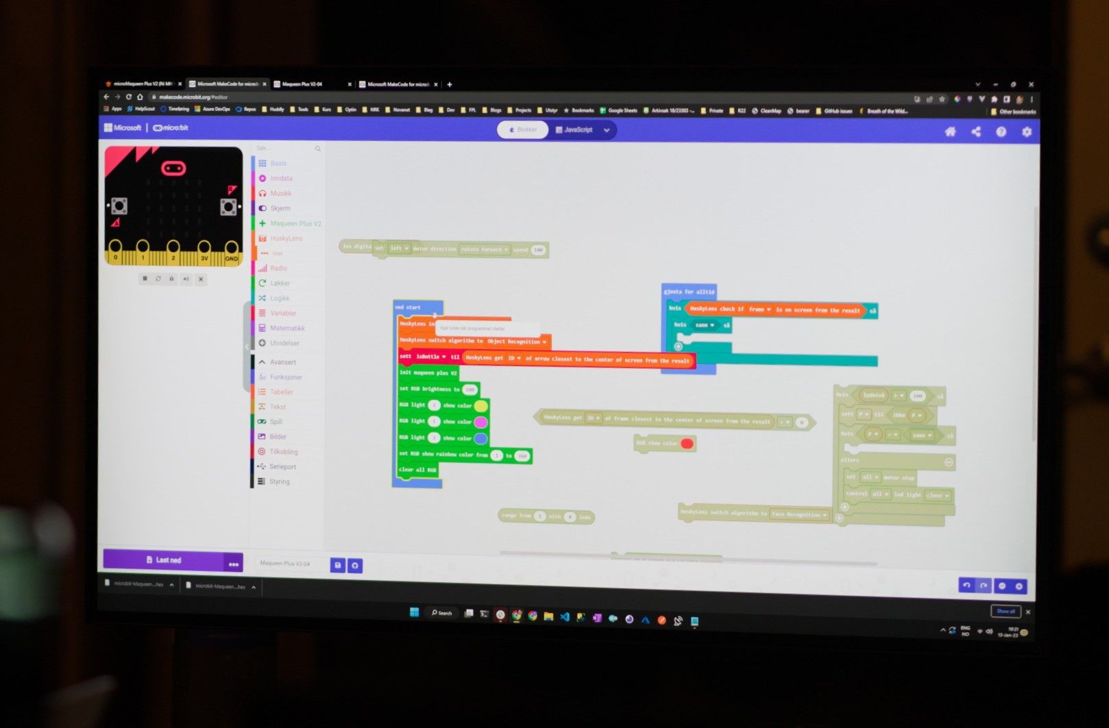 Some months ago I ordered 4 micro:bit-based Maqueen robots. I also ordered Huskylens AI-cameras and Maqueen Mechanics parts to connect to the robots. The idea was to gather our developers and let them use their skills on the robots. The results were amazing!