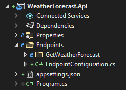 app.MapGet("/weatherforecast", GetWeatherForecastEndpoint.Execute);