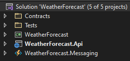 I've created a microservice named WeatherForecast for this blog post, which will act as a demo and reference. This service will expose an API and also have messaging functionality, reading messages from Azure Service Bus.