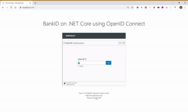 Note: This example covers regular Norwegian BankID. If you want BankID on mobile, change the Signicat URL in step 1. Use nbid-mobil in the acr_values, instead of nbid. Be aware that testing BankID on mobile requires a dedicated test SIM card that can be issued by Signicat.