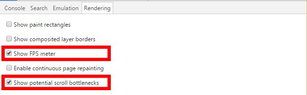 My favorites are the FPS meter and the scroll bottlenecks. The FPS meter includes two important factors for measuring the impact of hardware acceleration: a graph of FPS, together with the GPU memory consumption. Identifying the scroll bottlenecks helps me find the correct element to enable acceleration of.