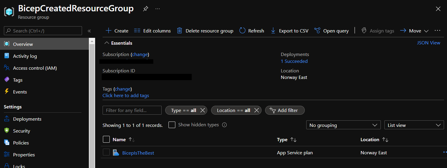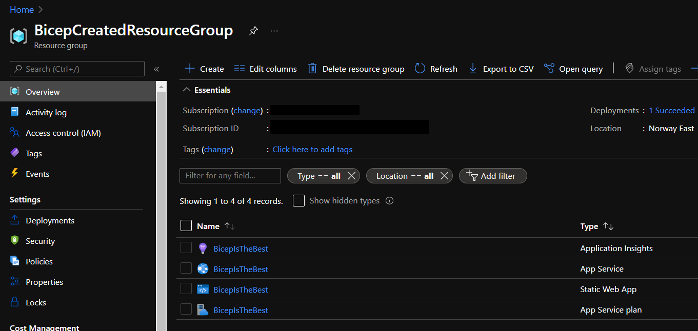 In this tutorial we created all necessary resources in the Azure portal to host an application using GitHub, GitHub Actions and Bicep as a domain-specific language (DSL).