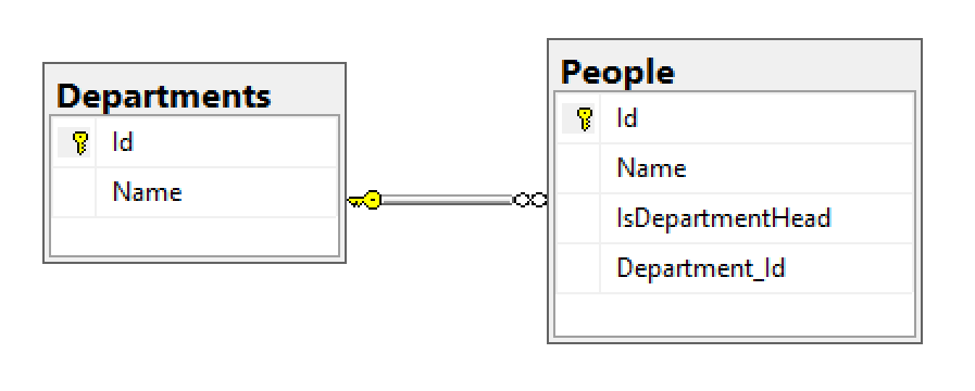 It's a list of departments and employees (people) working in those departments. Each department may or may not have a boss which is a person with the IsDepartmentHead property true. Ok, this is certainly not the best way to model this, but for the sake of the example bear with me.