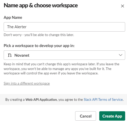 We need to create a webhook in Slack. You can find your apps here: https://api.slack.com/apps