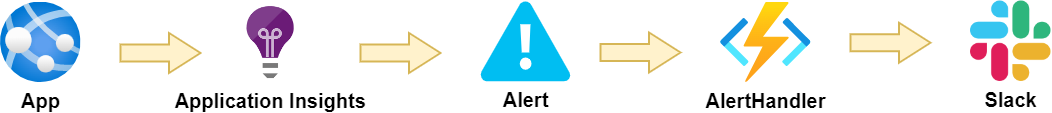Following the steps below, we will create an example app and connect it to Application Insights. Then we will configure an Alert rule that calls a webhook when exceptions occur. This webhook is provided by an Azure function app we're creating, called AlertHandler. This app will parse the alert and build a payload which is sent to a Slack webhook.
